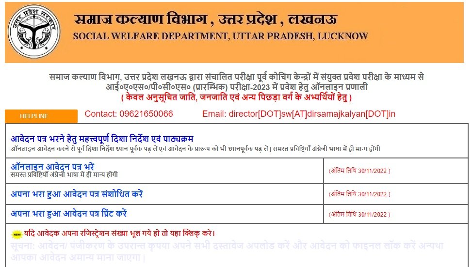 Introduction: –Social Welfare Department, SWD Uttar Pradesh has released the online application for admission in Free Coaching for the preparation of Civil Services and Public Service Commission Preliminary Examination 2023 for OBC, SC and ST candidates of Uttar Pradesh. Any candidate who wants to apply for this free coaching can do it till 30 November 2022. Read the notification for exam center information, seat information, syllabus and all other information.
